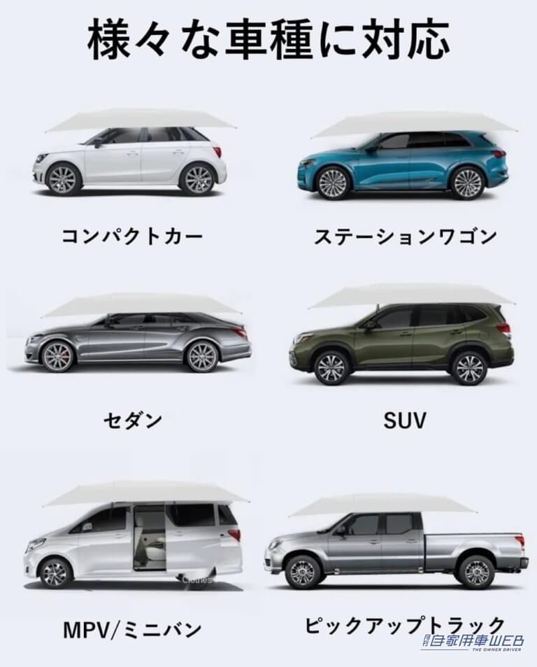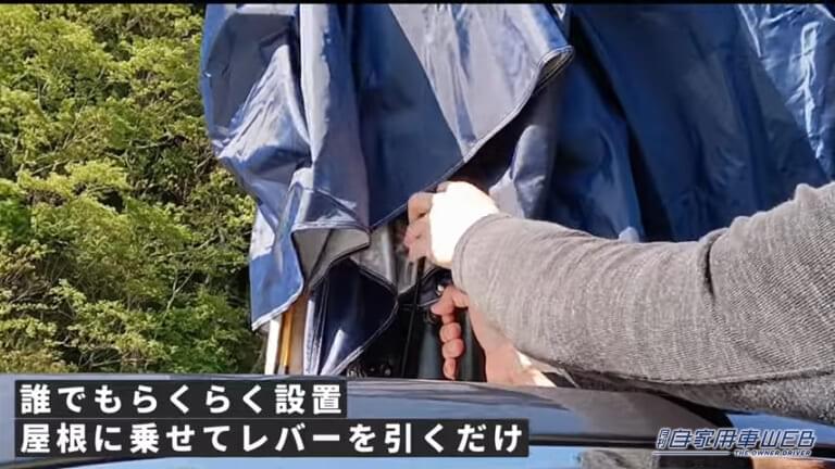 展開時のサイズは、縦4.1メートル:横2.2メートル隣、様々なタイプの車に対応している。