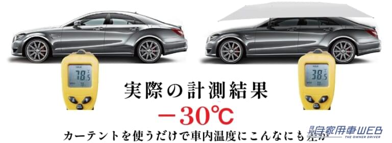 日差しもブロックし、熱も籠りにくいため、未使用時の車内温度との差は30度にもなるという。