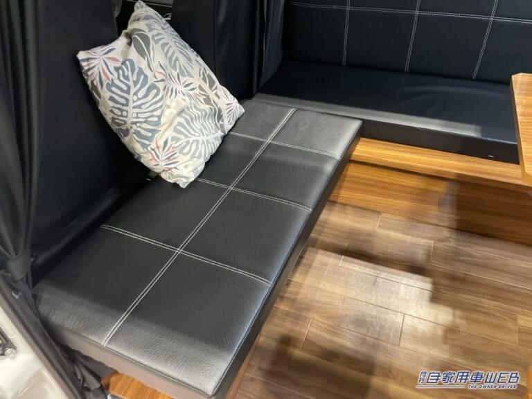 背もたれになっているシートを動かせばフルフラットにすることも簡単。2名が就寝可能なスペースで、車中泊にも最適な作りとなっている。