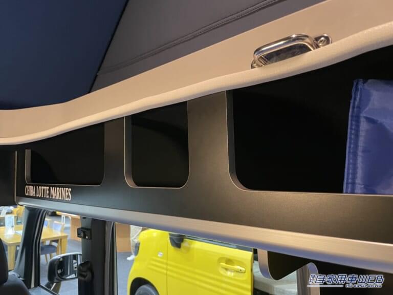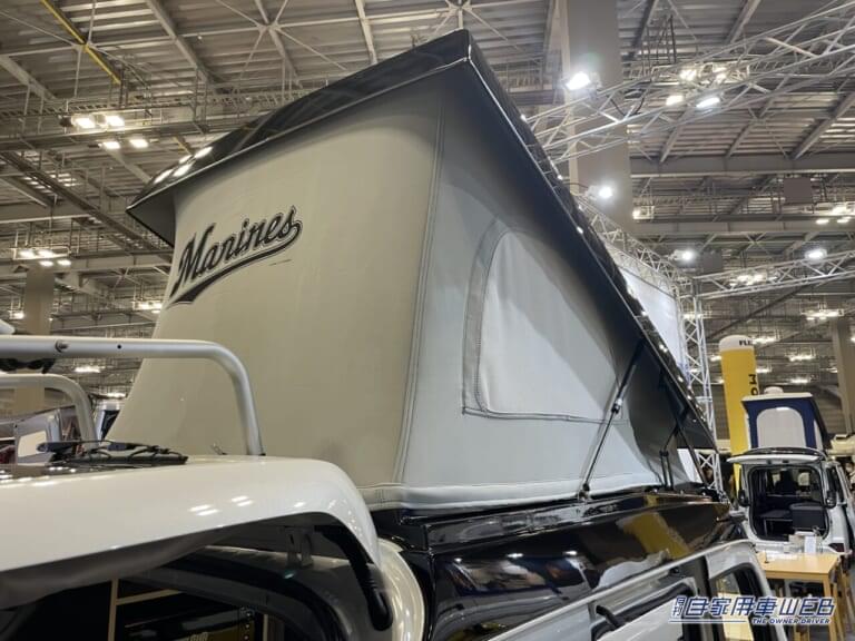 ポップアップ式のルーフテントも、外側から見ると千葉ロッテマリーンズのロゴがプリントされており、特別仕様車ならではのデザインを楽しむことができる。