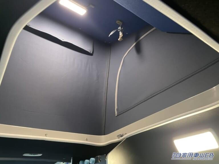 室内はフルフラットになっておりシンプルな作りだが、キャンパーに必要な装備は整っている。