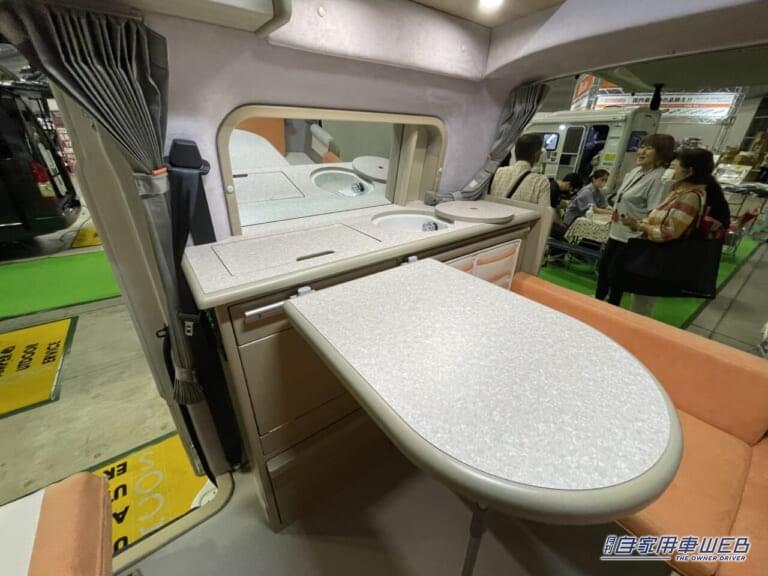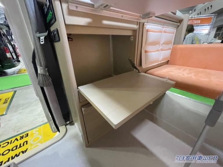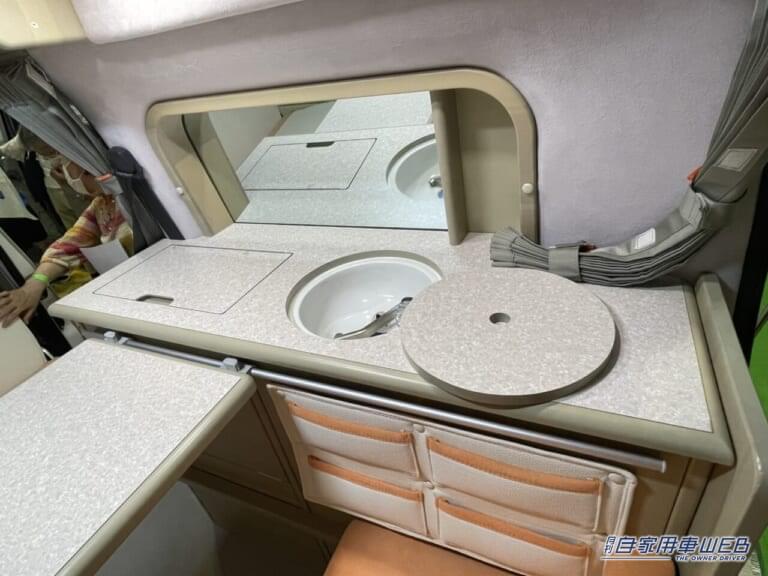 取り外し可能なスライド式のテーブルは非常に広く使いやすい。シンクを備えた台もフラットになるため、こちらと合わせれば広々とした作業テーブルを確保できる作りとなっている。