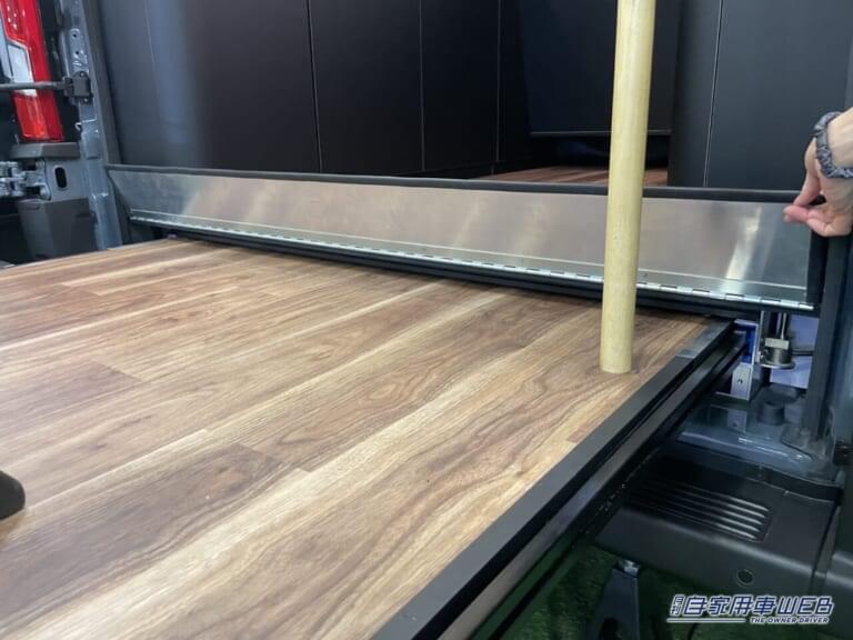 フロアはこのようにスライド式になっており、車内フロアの下に、テラスフロアを収納する仕組みだ。