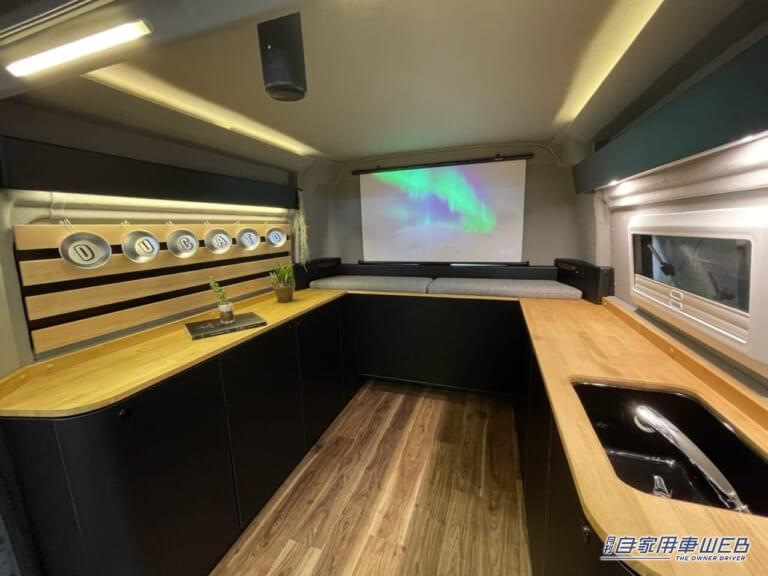 車内スペースは広々としており、この時はスクリーンに映像を映し出して、テラスに座ってそれを眺めるといったレイアウトになっていた。
