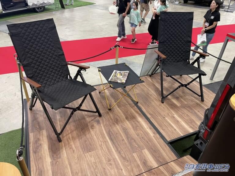 アウトドア用チェアを2脚置いて余裕のある広さだ。
