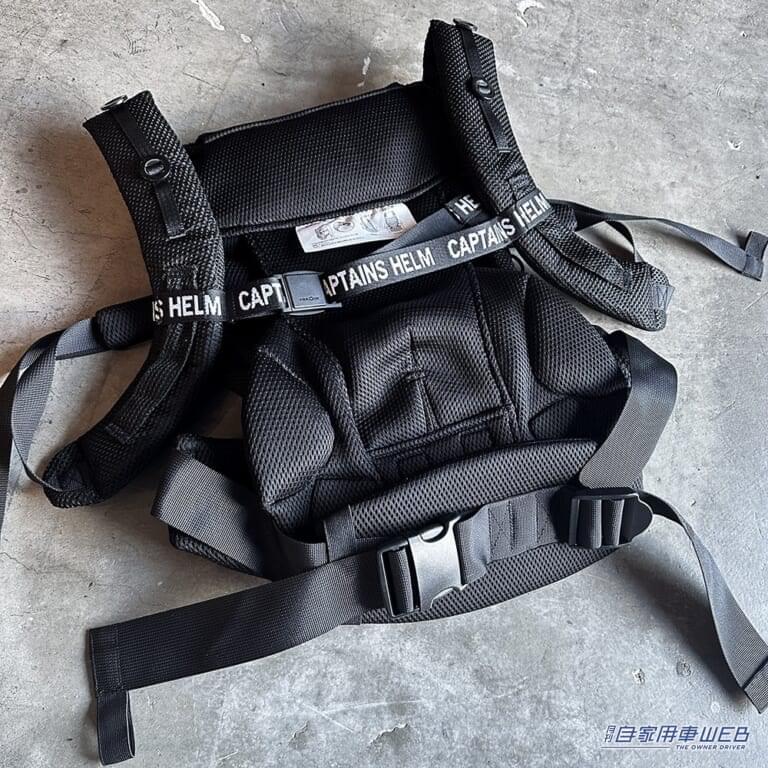 ・エアリーショルダーを固定する背中部分のベルトを、CAPTAINS HELMオリジナルLOGOベルトに変更し、デザインアクセントを持たせている。・またLOGOベルトを止める部分のバックルをオーソドックスなハメ込み式から、最高品質『FIDLOCK社製』”マグネットスナップバックル”に変更。後ろの肩甲骨側に両手を伸ばしバックルを止める作業が、マグネット式のバックルになることで着脱が大変スムーズになり 体の硬い方にもおすすめのディテール。