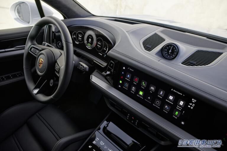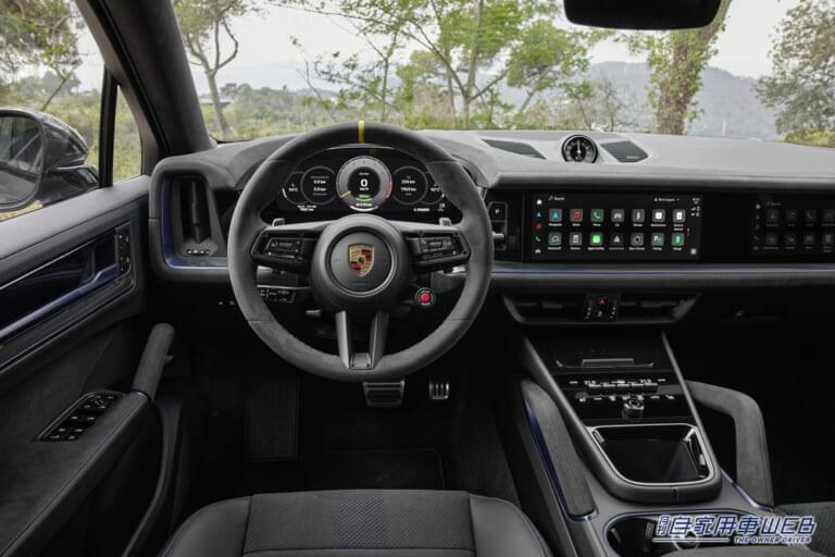 さらに一部市場で販売終了となった公道走行に特化したパフォーマンスモデル「カイエン ターボGT」で採用されていたパフォーマンス装備も追加されている。新型モデル専用にチューニングされたエアサスペンションを含むすべてのシャシーとコントロールシステムを採用したことで、標準車に対してボディは10mm低く設定。22インチ GTデザイン ホイール用パフォーマンスタイヤ、PDCC、リアアクスルステアリングのほか、優れたブレーキ性能を発揮するポルシェセラミックコンポジットブレーキ(PCCB)も標準装備。カイエンターボE-ハイブリッドクーペGTパッケージは、0-100km/h加速が3.6秒、最高速度は305km/hを記録している。