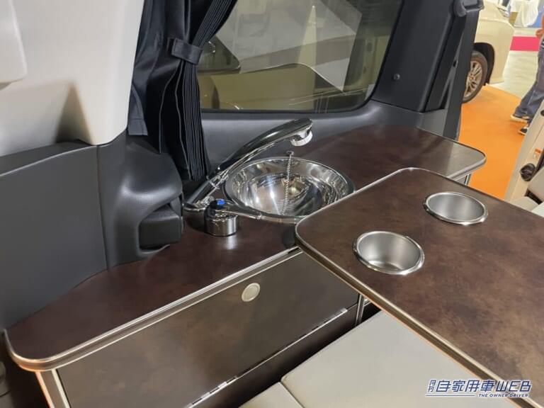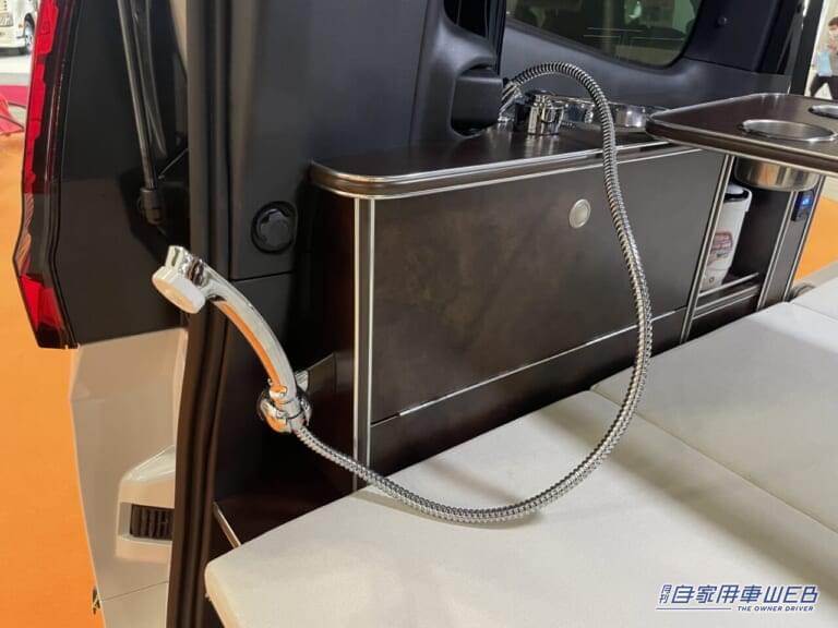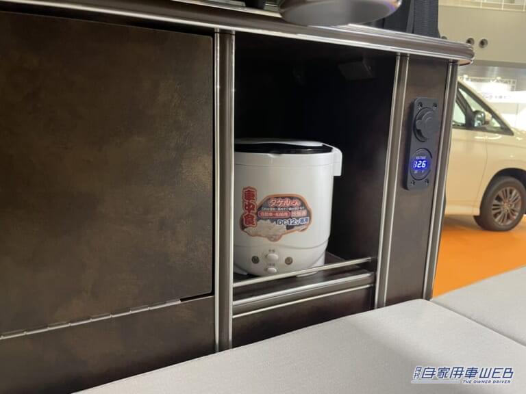左側にはシンクと炊飯器が。シンクの蛇口は車外まで伸びるシャワーになっているので、大きなものを洗う際などには便利。