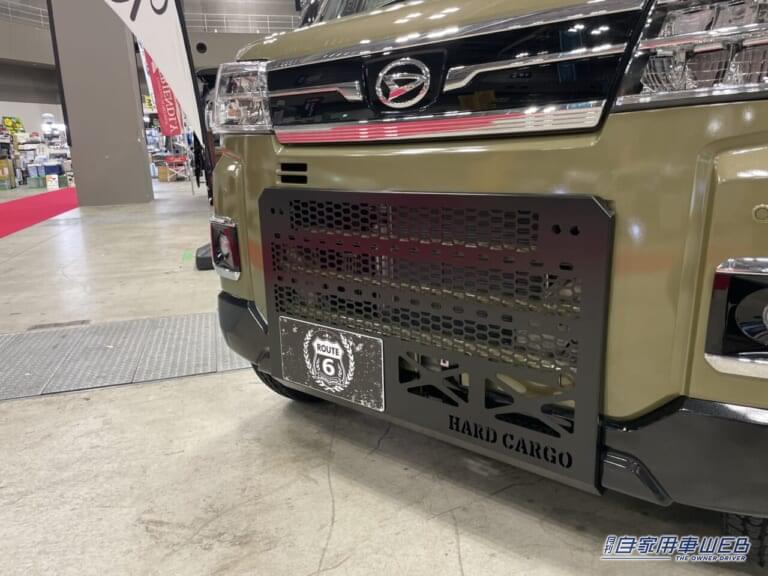 フロントグリルにはカスタムパーツを組み込んで、ワイルドな印象に。タイヤもリフトアップされているので、悪路にも強い。