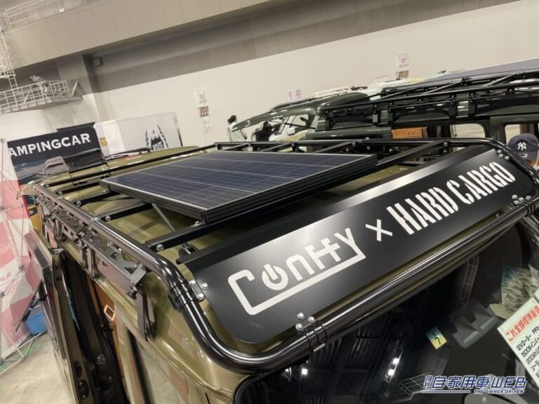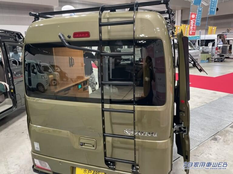 リヤゲートにはラダーが取り付けられており、ルーフキャリアへのアクセスも容易。また、ルーフキャリアの一部にソーラーパネルを設置しているので、発電も可能となっている。
