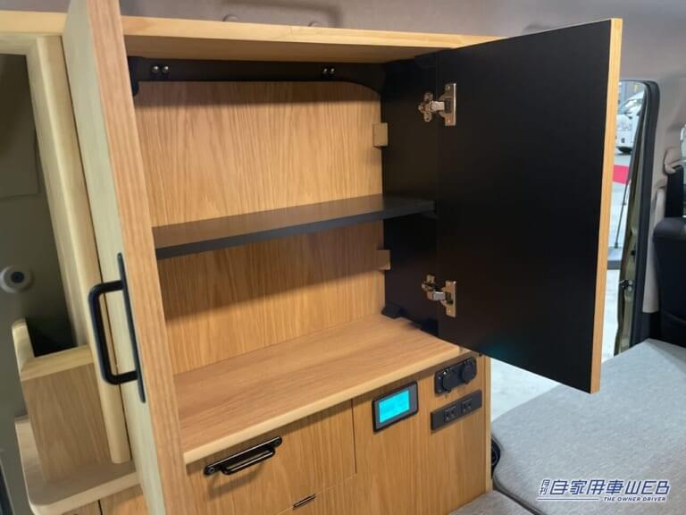 左側にはスイッチなどの電気系統がまとまっている。また、収納スペースをかなり広く確保しているため、趣味の道具をしまっておくには最適だ。
