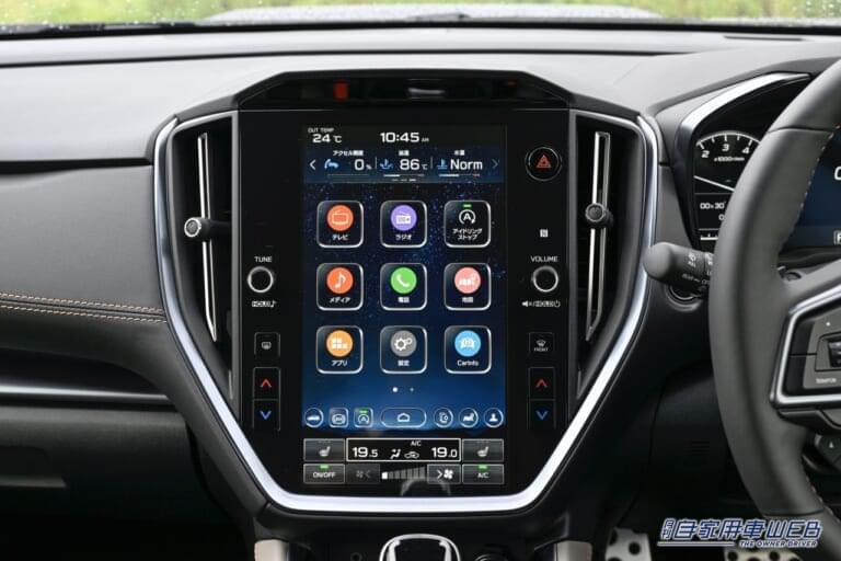 利便・快適装備も充実しており、フロント6個/リヤ4個のスピーカーシステムを採用したハーマンカードンサウンドシステムを標準装備としたほか、11.6インチセンターインフォメーションディスプレイは、「クロストレック」と同じくApple CarPlayのワイヤレス接続とAndroidAutoの縦画面表示に対応。さらにフル液晶メーターにApple CarPlayのアプリナビ表示が可能になり使い勝手が向上している。さらに、専用アプリからの遠隔操作で、空調設定とエンジン始動が可能なリモートエアコンにも対応した。