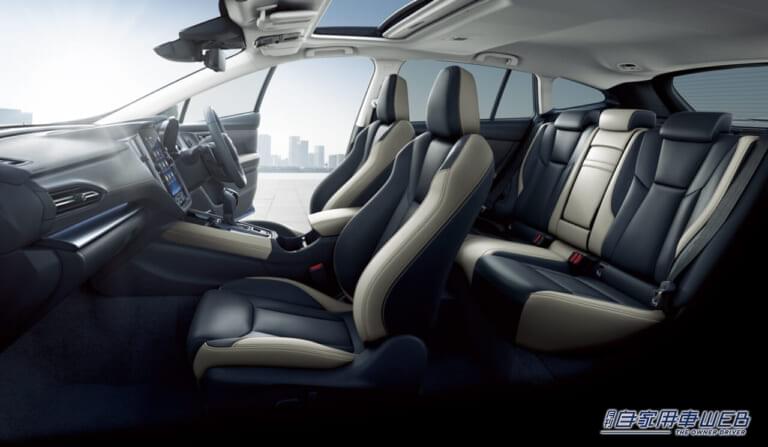 室内空間も「レヴォーグ」をベースとしながら、暖色系の基本構成にインパネ/ドアパネルに青味をミックス。シート表皮はブラック×アッシュにカッパーステッチを組み合わせ、華やかな配色とコントラストとしている。標準はトリコット/ファブリックシートだが、メーカーオプションで本革シートも用意。さらに、フロントシートは乗降性に配慮しながらホールド性を確保するため、座面にインサートワイヤを追加し、土手の高さを最適化している。