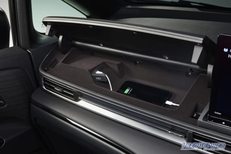 インテリアでは、「USBチャージャー」をラインナップし、多人数乗車の場合に標準装備だけでは不足がちなUSBチャージャーを増設できる。前席助手席側のインパネアッパーボッ クスや運転席側の3列目サイドライニングにUSB Type-Aのチャージャーを、2列目用としてセンターコンソールボックス後部に最大45Wの出力が可能な「USB PDチャージャー」が用意されている。