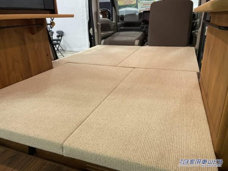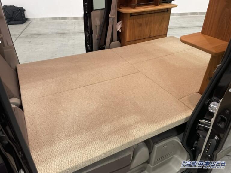 軽自動車であるにもかかわらず、車内スペースはかなり広い。フルフラットにしたシート部分には大人2名が横になることができる。