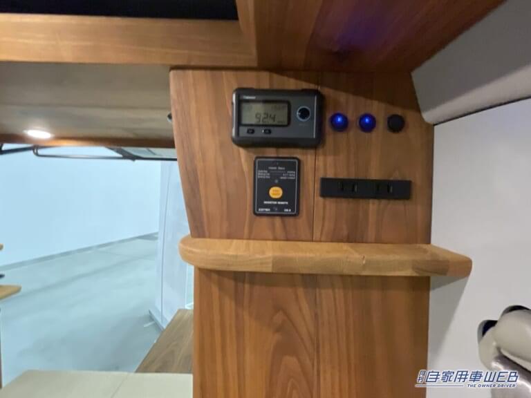 また側面にはスイッチやソケットなどの電気系統がまとまっている。