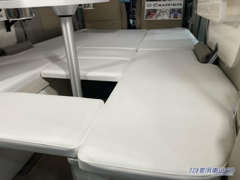 車内はテーブルが設置されている部分以外は、ほぼフルフラットとなっており、広々とした空間となっている。