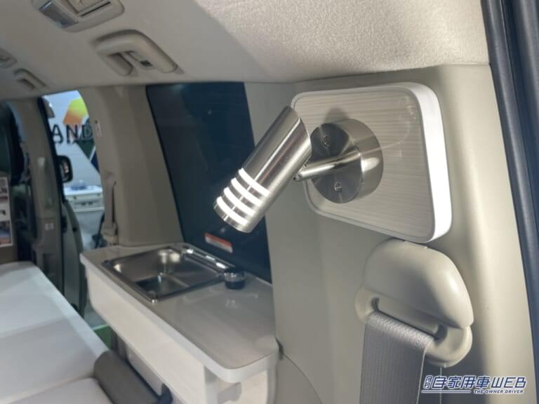 後部には室内灯も設置されている。角度を調整できるので、バックドアを開けて車外を照らすこともできる。