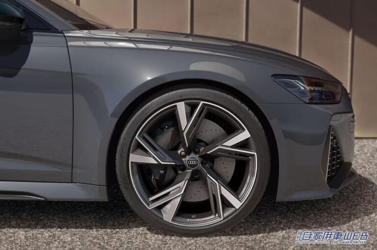 エクステリアは、グロスブラックの3Dハニカム構造のシングルフレームグリルを採用。エクステリアカラーはRS performance専用色として「アスカリブルーメタリック」も選択可能。フロントドア、ルーフ、テールゲートなどを除いたボディ外板はRSモデル専用のデザインとなっている。足元は「Audi Sport」製の21インチ 10スポークスターデザインホイールに275/35ZR21タイヤを組み合わせることで、スポーティなイメージを高めている。