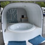 |移動する露天風呂! バスタブを備えたキャンピングトレーラー