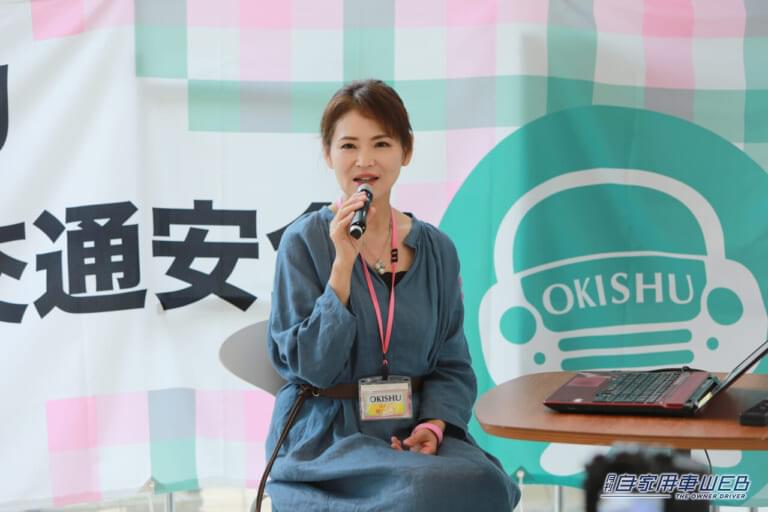 プログラムの第一部は、吉田由美さんと私による「交通安全トリビア」女子トークです。自動車業界で長年、クルマや安全と向き合ってきた経験と、いち生活者としての視点をかけあわせ、知るだけ、気づくだけ、ちょっと視点を変えるだけで、すぐに交通安全につながるお話をさせていただきました。たとえば、「OKISHU」プロジェクトの第二弾として、お肌のハリやボツボツをタイヤの空気圧と溝に例えた「ハリミゾプロジェクト」も呼びかけており、月に一度のタイヤチェックが大切な理由もわかりやすくお伝えできたかなと思っています。