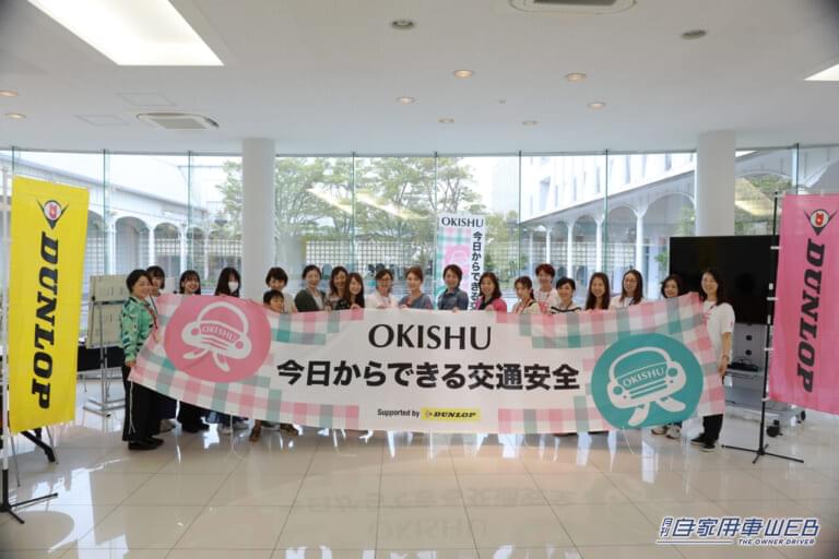参加してくれたのは、SNS告知などで応募してくれた先着20名の女性たち。「OKISHU」の趣旨に賛同してマツダが提供してくれた会場は、いつになく華やかな雰囲気に包まれました。また「OKISHU」の活動をサポートしてくれた住友ゴムは、女性の9人に1人がかかると言われている乳がんの早期発見・早期治療を推進する「ピンクリボン運転」に賛同しており、10月の「ピンクリボン月間」にちなんで会場にはいつものイエローとはちがう、この時期だけのピンクのDUNLOPがのぼりやステッカーで注目を集めていました。