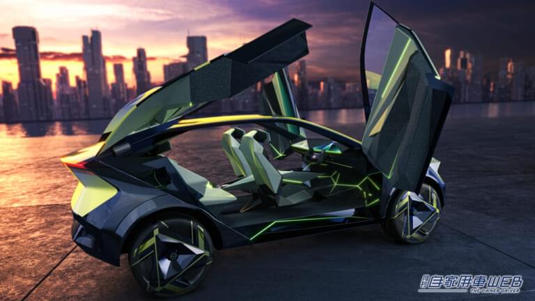 インテリアは、都市での生活空間に溶け込むようにデザイン。万華鏡から着想を得た三角形で構成されたインストルメントパネルや、ディスプレイに映し出されるHMI(Human Machine Interface)は、オーナーの気分で演出を変えることが可能で、フロントシートのアレンジを変更することで、ソファに座っているかのような空間をもたらしている。上方に大きく開く特徴的なドアは、乗り降りのしやすさだけでなく、圧倒的な解放感をもたらしている。