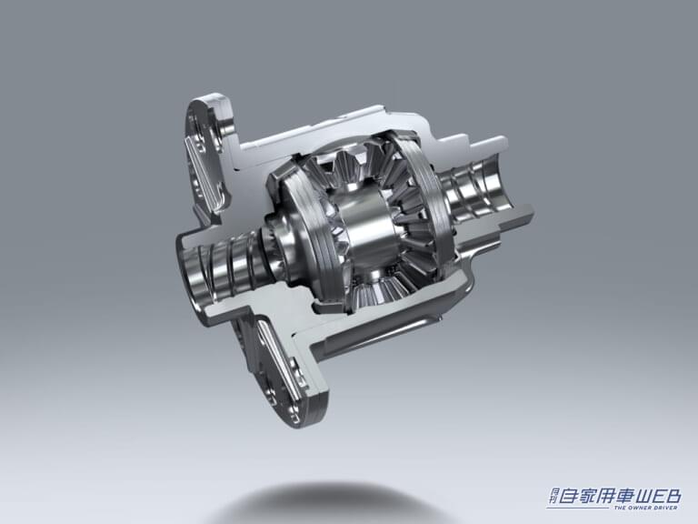 新開発の「アシンメトリックLSD」は、従来タイプ以上にスムーズでリニアな旋回特性を獲得した新世代のLSD。旋回時の安定性が格段に向上しているという。