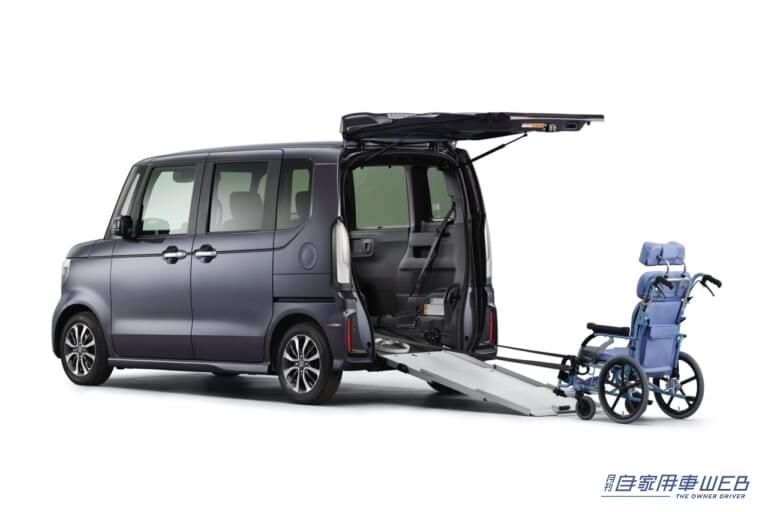 N-BOX/N−BOXカスタムをベースに、車いすのまま乗り降りできるスロープ仕様車を設定。使用時に安心感を提供する速度調整・進路補正機能付き電動ウインチを全車に標準装備している。スロープはフラットに収納できるため、普段使いや趣味にも生かすことが可能。