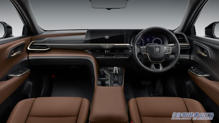 インテリアは、「アイランドアーキテクチャー」を活かしたデザイン。運転席と助手席をアシンメトリーにコーディネートされており、運転席側はブラック、助手席側は乗員に寛いでもらえるよう、特別な素材とカラー配色を行っている。メーター・ディスプレイは水平に集約し、視線移動を最小限にすることで、ドライバーが運転に専念できる環境としている。さらにキャビンサイズのゆとりに加え、室内音を反射する「調音天井」を採用(トヨタ初)したことで、すべての乗員が会話しやすい空間を実現している。