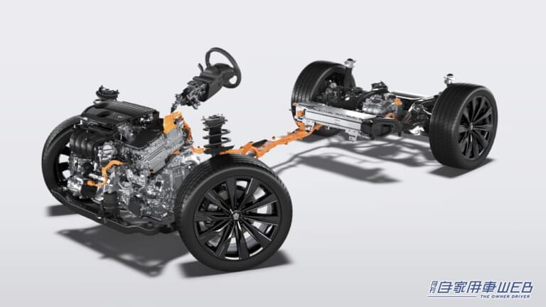 PHEVは、出力密度の高い駆動モーターを採用することで、加速性能を強化。さらに微妙なアクセルワークで前後の荷重移動や車速のコントロールができることで、クルマと対話し自在に操る楽しさを存分に味わえるという。駆動用バッテリーは新開発の大容量リチウムイオン電池を搭載しており、EV走行可能距離を拡大することで、日常生活の大部分をEV走行でカバーできる性能が与えられている。