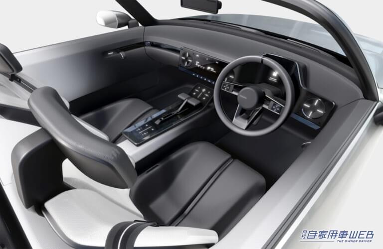 少し高めの車高を採用したコンパクトオープン。BEVの特性でる圧倒的な静粛性を持ち、開放的な居住空間で自然の中をお散歩気分で歩いていけるような、ゆったりとした楽しさを提案する。日常にスローな価値を生み出す軽乗用BEVだ。