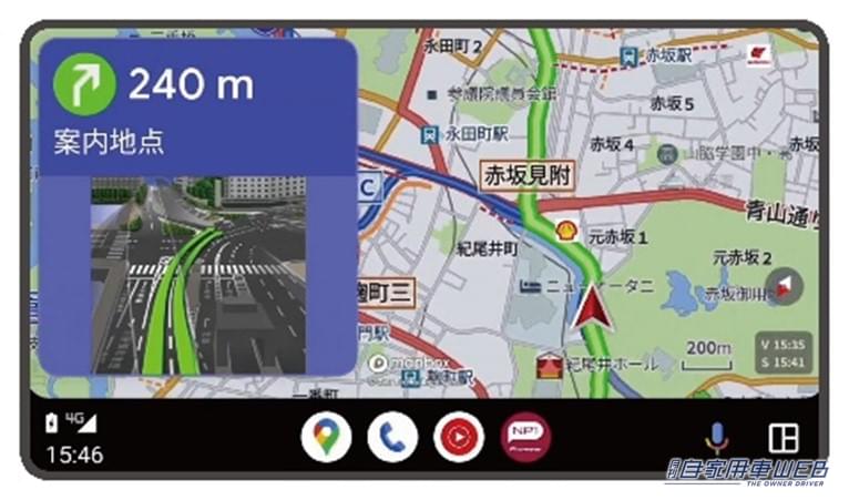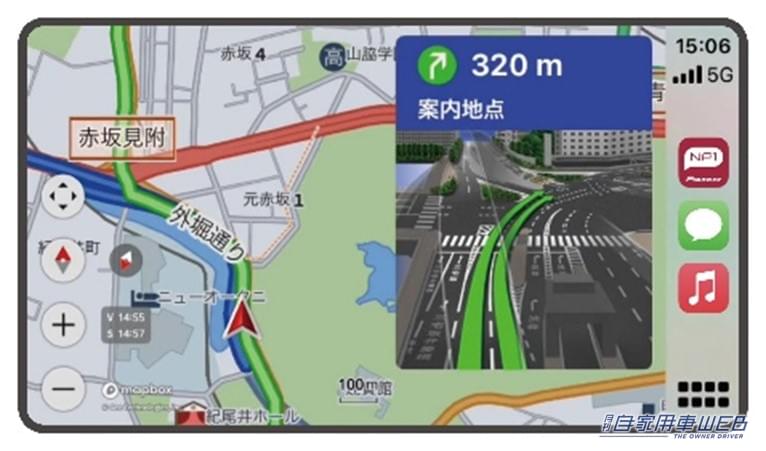 今回の大型アップデートでは、「NP1」と連携して使用するスマートフォン専用アプリの「My NP1」と、Apple CarPlay/Android Autoに対応したカーナビやディスプレイオーディオなどを、USBケーブルもしくはワイヤレスで接続することにより、「My NP1」の地図や誘導・案内を大画面に表示し、タッチパネルでの操作が可能となる。音声については「NP1」本体から出力される。