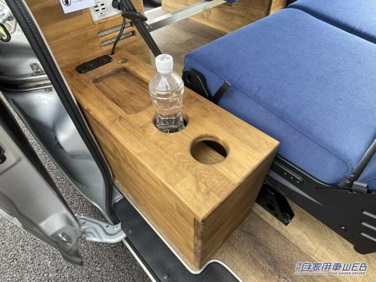 荷室後部にはシートとキッチンカウンターが設置されている。シートは背もたれを動かせばすぐにフラットにできる仕組み。