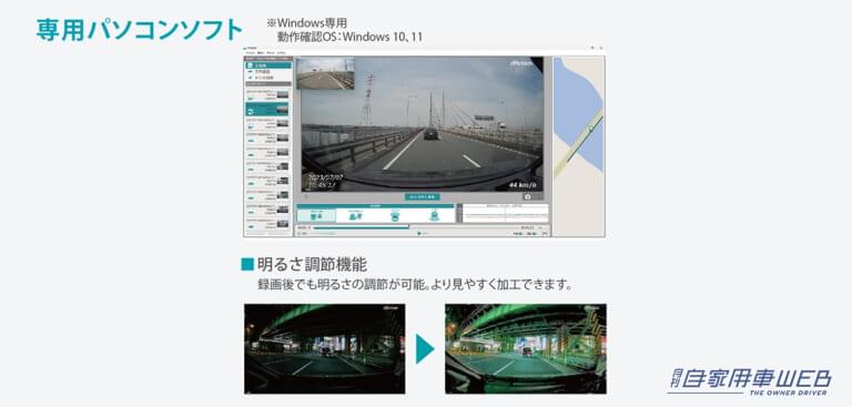 ・明るさ調節機能:録画後でも明るさの調節が可能。より見やすく表示