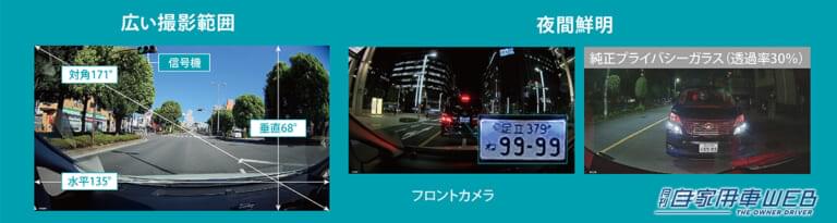 交差点の信号機や隣車線など「ひろ」く撮り、夜間でも前・後方車両のナンバープレートなどがしっかり「みえ」る、「ひろ」×「みえ」がコンセプト。