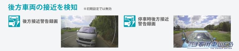 ・走行中に接近してくる危険な後方車両を検知して警告・録画