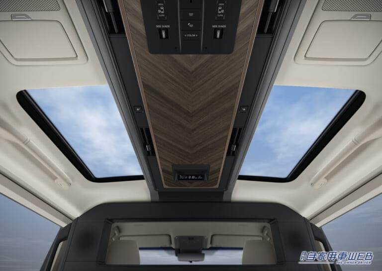 サンシェードはガラスルーフ、スライドドアガラス、リヤクォーターガラスそれぞれに装備。シートに備わるリモコンやオーバーヘッドコンソールのスイッチで操作することができる。