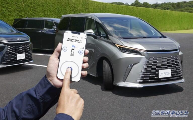「Lexus Teammate」の駐車支援機能アドバンストパークも装着。専用アプリをインストールしたスマートフォンを操作することで、駐車&出庫をリモート操作することも可能。