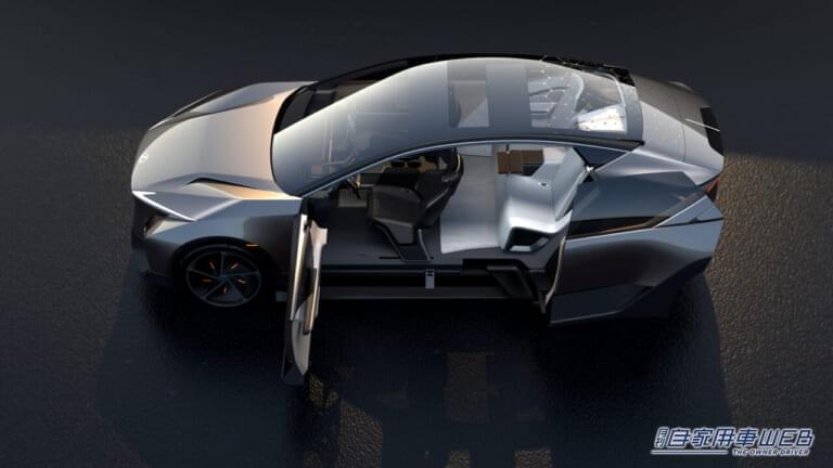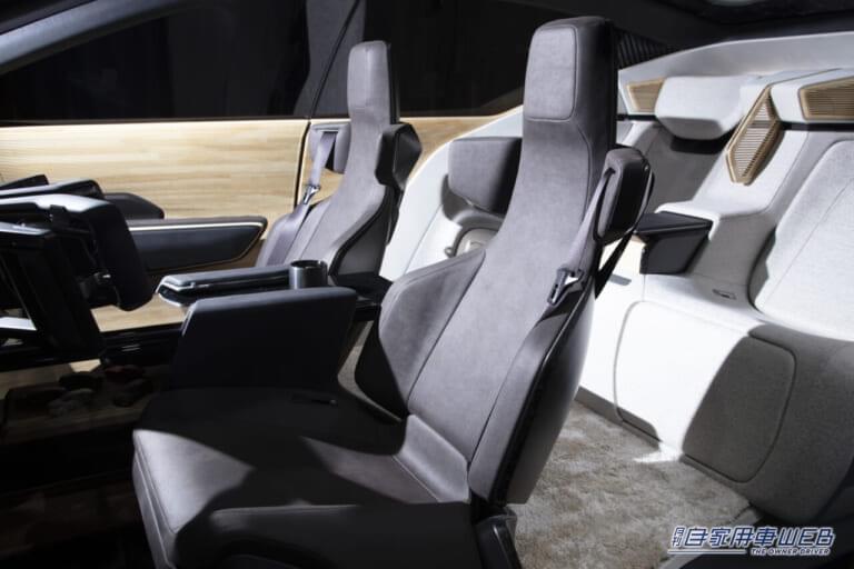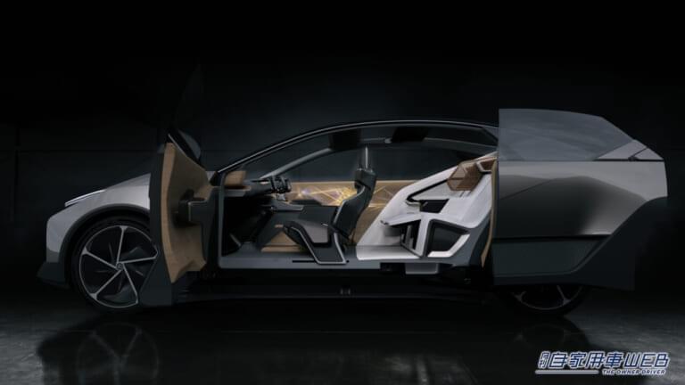フロントにはヒンジドアだが、リヤドアには、大きく開口するピラーレスのスライドドアを採用し、高い乗降性を提案。このスライドドアは2023年9月に発表された新しいトヨタ「センチュリー」に採用された車体にレールを配する必要がなく、車両のデザインを維持したまま開閉することができる「リンク式パワードアシステム」の可能性もある。