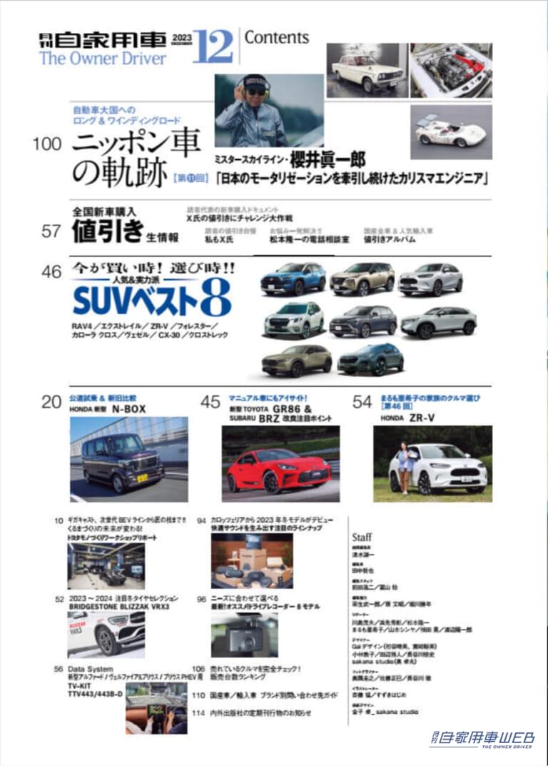 月刊自家用車12月号(10/26発売)も見どころ満載!/東京モーターショーから名称が変わった「ジャパンモビリティショー2023」の最新情報をお届け!/新型「クラウンスポーツ」が鮮烈デビュー!後に続く「セダン&エステート」の魅力も解説/新型「N-BOX」の真の実力は?リアルワールドでその進化具合を見極める!/今が買い時!選び時!!人気&実力派【SUVベスト8】ガイド/大好評連載「X氏の値引き情報」も大充実