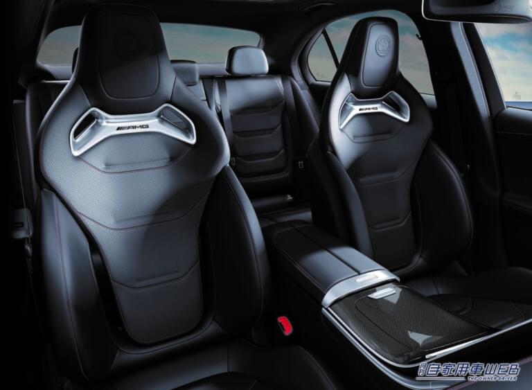 Sクラスの要素も取り入れたインテリアは、グリップが太く上質なナッパレザーを使ったAMGパフォーマンスステアリングや、ダッシュボードと縦型の11.9インチのメディアディスプレイを6度、ドライバー側に傾けた新しいデザインを採用。シートもAMG専用本革(ナッパレザー)スポーツシートを標準装備。さらにダッシュまわりにもARTICOの表皮を施すなどで、上質なイメージを強めている。