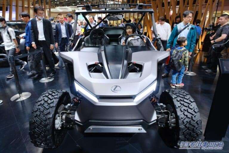 そのためバギー車が展示されているのを見つけた時は「これがレクサスなの!?」とビックリ。吸い寄せられるように見学に行ってしまいました。お話を聞いてみると、ROVは3気筒の水素エンジンを積んでおり、悪路走破性・環境性能を両立した最新の乗り物なんだとか。