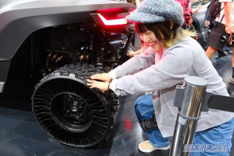 また、特徴的な外見から注目を集めていたエアレスタイヤは、北米では市販化されているというミシュラン製のもの。