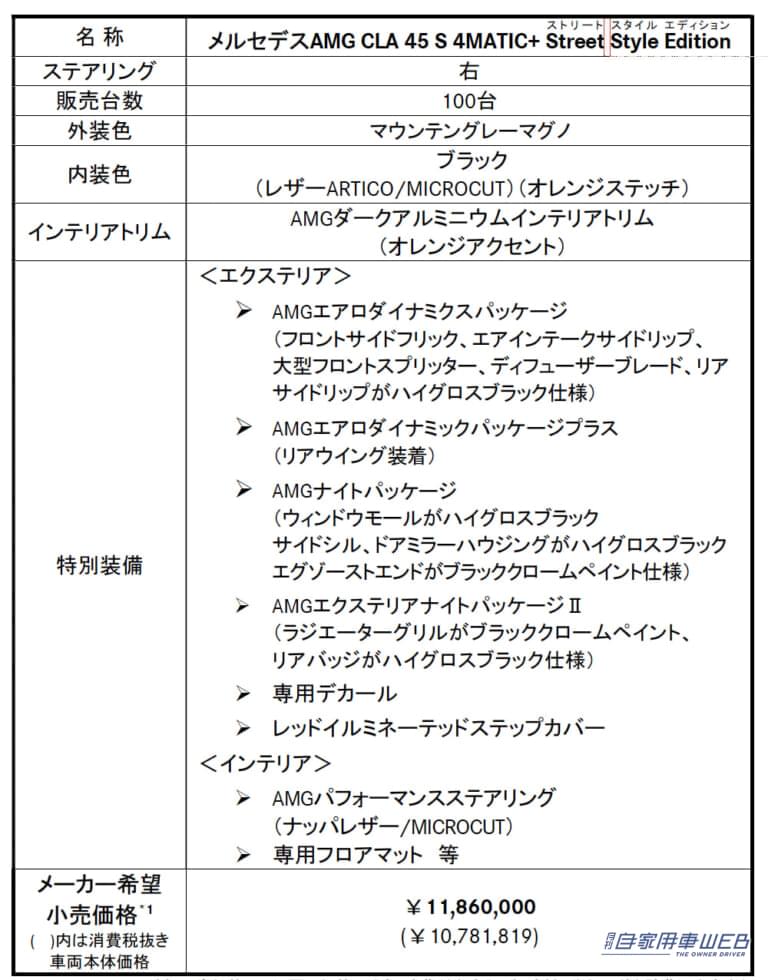 メルセデスAMG CLA 45 S 4MATIC+ Street Style Edition 価格は1186万円(限定100台)