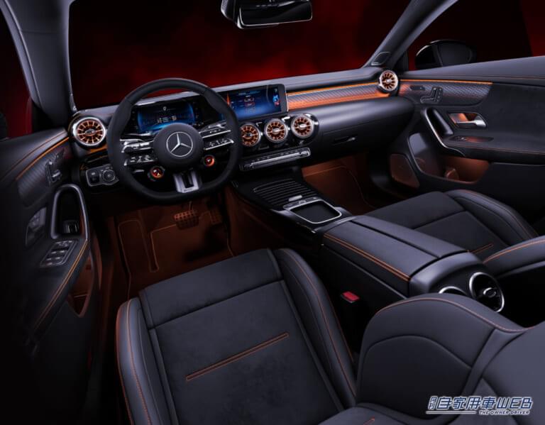 インテリアは、メルセデスAMG GT Black Seriesからインスパイアされた専用内装で、AMGパフォーマンスステアリング(ナッパレザー)や、オレンジステッチを施したレザーARTICO/MICROCUTブラックシート、オレンジアクセントを取り入れたインテリアトリムなどを装着。スパルタンな雰囲気がより強まっている。