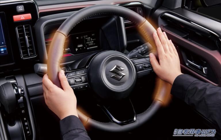 冬のドライブに重宝するステアリングヒーターをスズキ軽モデルとして初採用。