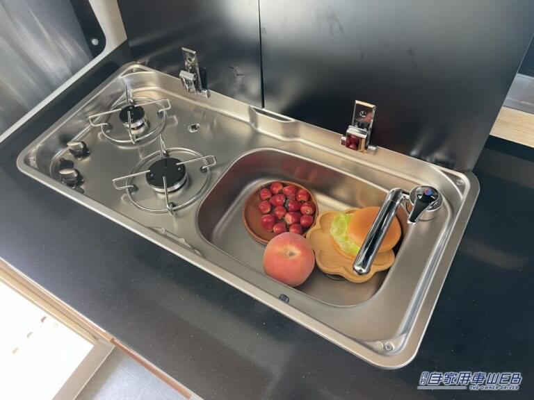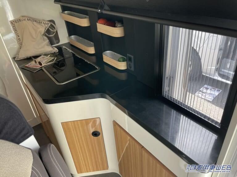 車内左にはキッチンカウンターが設置されている。
