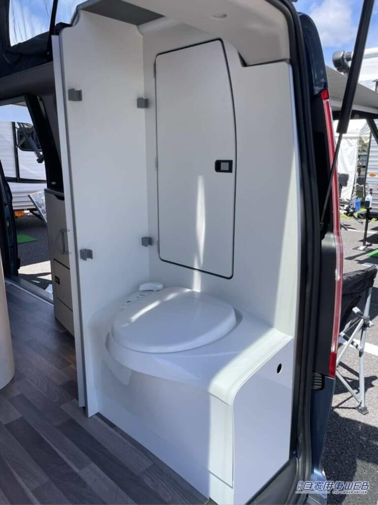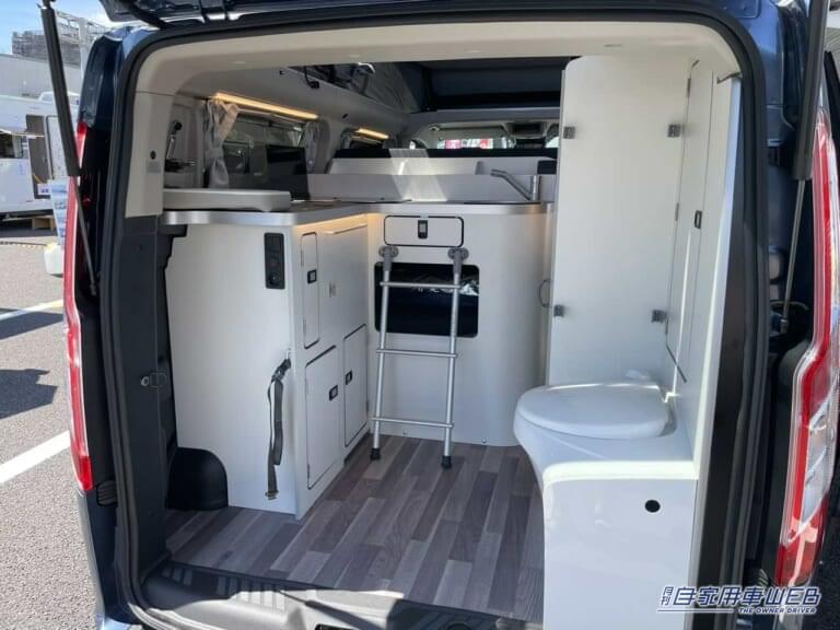 後部はキッチンカウンターとトイレが設置されている。フロアも広くストレスなく荷物を積み込める。