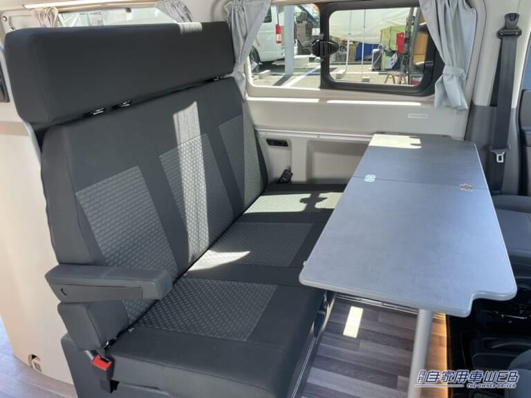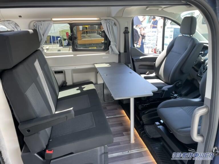 1列目のシートが回転するため、車内スペースを無駄なく使うことができる。2列目は3名掛けで広々とした作り。
